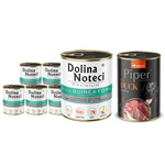 Mokra karma dla psa Dolina Noteci Premium bogata w perliczkę z jabłkiem zestaw 6 x 800 g + Piper Animals z kaczką i gruszką 400 g Gratis